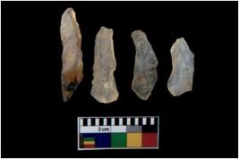 | Description / विवरण | There are n 4 utilized flake cores. There are multi directional irregular scar pattern on them. All of them are tapering at one end. |