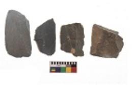 | Description / विवरण | There are n 4 utilized flakes. There are multi directional irregular scar pattern on both dorsal and ventral face of the flakes. One is tapering at one end and three have blunted edges. |