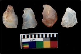 | Description / विवरण | There are n 4 utilized flake cores. There are multi directional irregular scar pattern on them. Three have blunted edges and one has round edge. |
