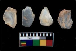 | Description / विवरण | There are n 4 utilized flake cores. There are multi directional irregular scar pattern on them. One has sharp edge and three have blunted edges. |