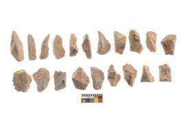 | Description / विवरण | There are n 20 utilized flakes. There are multi directional irregular scar pattern on both dorsal and ventral face of the flakes. Among them some of them have tapering edges, and few have flat base edges. |