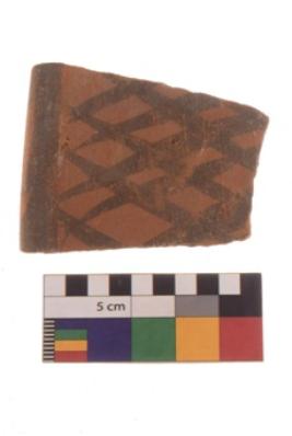 | Description / विवरण | Specimen of potsherd with black decorative geometric Net Pattern painting. |