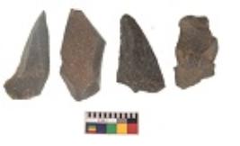 | Description / विवरण | There are n 4 utilized flakes. There are multi directional irregular scar pattern on both dorsal and ventral face of the flakes. Three are tapering at one end and one has sharp edge. |