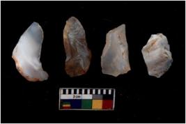 | Description / विवरण | There are n 4 of utilized worked cores and have multidirectional irregular scar pattern on both dorsal and ventral sides. Three are tapering at one end. |