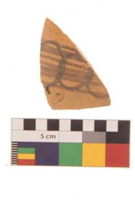 | Description / विवरण | Specimen of black on red ware with decorative geometric Seven parallel lines between empty circle painting. |