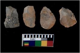 | Description / विवरण | There are n 4 utilized flake cores. Out of them three are made up of Chalcedony and one is made up of Chert. There are multi directional irregular scar pattern on them. Two are tapering at one end and two have blunted edges. |