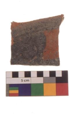 | Description / विवरण | Specimen of Potsherd black on red painted pottery. It is fine fabric in sharp contrast with painted design are executed in black pigment. |