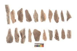 | Description / विवरण | There are n 20 utilized flakes. There are multi directional irregular scar pattern on both dorsal and ventral face of the flakes. All are tapering edges. |