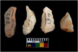 | Description / विवरण | There are n 4 cores. There are multi directional irregular scar pattern on both dorsal and ventral face of the cores. Some have blunted edges and some have round edges. |