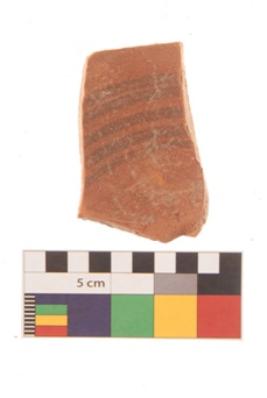 | Description / विवरण | Specimen of black on red ware with decorative geometric Five parallel lines painting. |