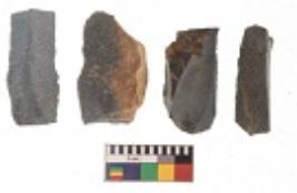 | Description / विवरण | There are n 4 utilized flakes. There are multi directional irregular scar pattern on both dorsal and ventral face of the flakes. Two are tapering at one end and two have sharp edges. |