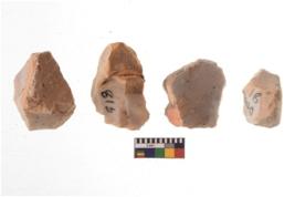 | Description / विवरण | There are n 4 of utilized worked cores and show irregular scar pattern on both dorsal and ventral side. One has a flat base. |