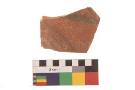 | Description / विवरण | Specimen of black on red ware with decorative geometric Three parallel lines painting. |
