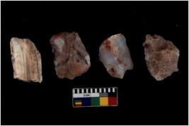 | Description / विवरण | There are n 4 of utilized worked cores and show multidirectional irregular scar pattern on both dorsal and ventral sides. |