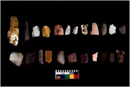 | Description / विवरण | There are n 20 Flake tool; There are multidirectional irregular scar pattern on them. few have blunt edges, Some of them are tapering at one end. |