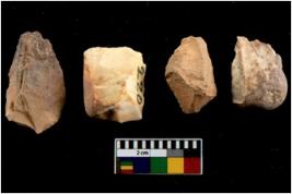 | Description / विवरण | There are n-4 of utilized flake cores. There are multidirectional irregular dominant scar pattern on both dorsal and ventral face of the cores. |