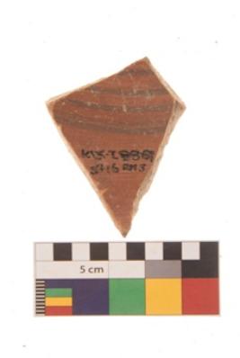 | Description / विवरण | Specimen of black on red ware with decorative geometric Five parallel lines painting. |