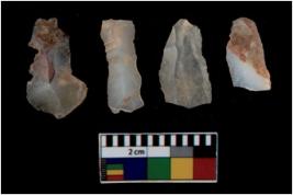| Description / विवरण | There are n 4 utilized flake cores. There are multi directional irregular scar pattern on them. All of them are tapering at one end. |