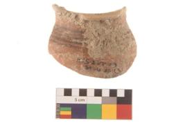 | Description / विवरण | Specimen of black on red ware with traces of decorative geometric Five parallel lines painting. |