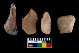 | Description / विवरण | There are n 4 cores. There are multi directional irregular scar pattern on both dorsal and ventral face of the cores. Some have blunted edges and some have round edges. |
