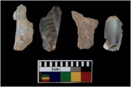| Description / विवरण | There are n 4 utilized flake cores. There are multi directional irregular scar pattern on them. All of them are tapering at one end. |