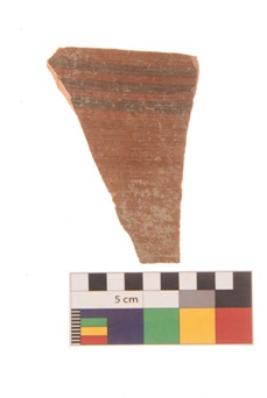 | Description / विवरण | Specimen of black on red ware with decorative geometric Three parallel lines painting. |