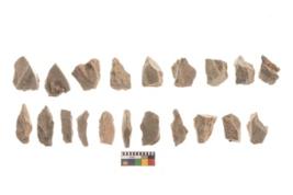 | Description / विवरण | There are n 20 utilized flakes. There are multi directional irregular scar pattern on both dorsal and ventral face of the flakes. Among them some of them have tapering edges, and few have broken tip. |