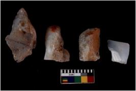 | Description / विवरण | There are n 4 of utilized worked cores and have multidirectional scar pattern. Two are tapering at one end. |