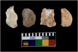 | Description / विवरण | There are n 4 utilized flake cores. There are multi directional irregular scar pattern on them. One has sharp edge and three have blunted edges. |