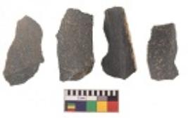 | Description / विवरण | There are n 4 utilized flakes. There are multi directional irregular scar pattern on both dorsal and ventral face of the flakes. Three are tapering at one end and one has sharp edge. |