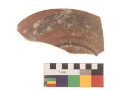 | Description / विवरण | Specimen of black on red ware with traces of decorative geometric Three parallel lines painting. |