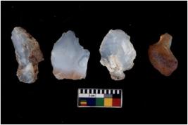 | Description / विवरण | There are n -4 of utilized worked cores and show multidirectional irregular scar pattern on both dorsal and ventral sides. One has a round base. |