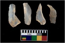 | Description / विवरण | There are n 4 utilized flake cores. There are multi directional irregular scar pattern on them. One is tapering at one end and three have sharp edges. |