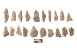 | Description / विवरण | There are n 20 utilized flakes. There are multi directional irregular scar pattern on both dorsal and ventral face of the flakes. Among them few have tapering edges, and few have broken tip. |
