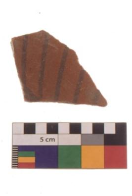 | Description / विवरण | Specimen of Potsherd with black decorative linear painting . |