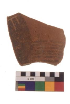 | Description / विवरण | Specimen of Potsherd with black decorative linear painting . |