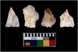| Description / विवरण | There are n 4 utilized flake cores. There are multi directional irregular scar pattern on them. Two have sharp edge and two have blunted edges. |
