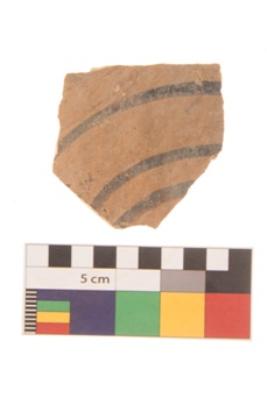 | Description / विवरण | Specimen of black on red ware with decorative geometric Three curved lines painting. |