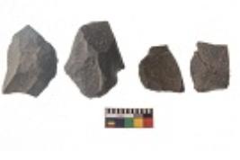 | Description / विवरण | There are n 4 utilized flakes. There are multi directional irregular scar pattern on both dorsal and ventral face of the flakes. Two have flat base and two have blunted edges. |