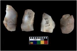 | Description / विवरण | There are n 4 cores. There are multi directional irregular scar pattern on both dorsal and ventral face of the cores. Some have blunted edges and some have round edges. |
