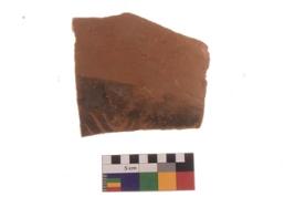 | Description / विवरण | Specimen of Potsherd black on red painted pottery. It is fine fabric in sharp contrast with painted design are executed in black pigment. |