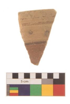 | Description / विवरण | Specimen of black on red ware with traces of decorative geometric Three parallel lines between dots painting. |