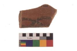 | Description / विवरण | Specimen of Potsherd black on red painted pottery. It is fine fabric in sharp contrast with painted design are executed in black pigment. |