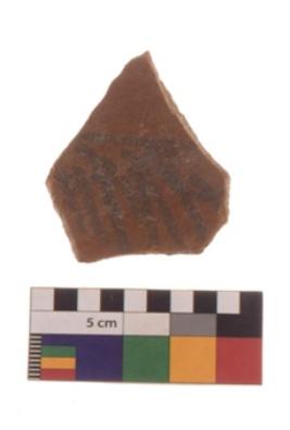 | Description / विवरण | Specimen of Potsherd with black decorative linear painting . |