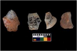 | Description / विवरण | There are n 4 cores; there are multidirectional irregular scar pattern on them. The reverse bulb and platform can be seen. |