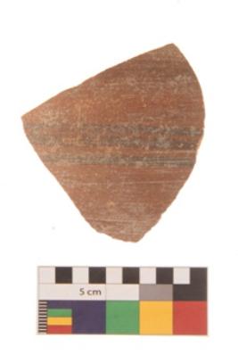 | Description / विवरण | Specimen of black on red ware with traces of decorative geometric Three parallel lines painting. |