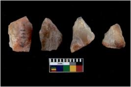 | Description / विवरण | There are n 4 cores. There are multi directional irregular scar pattern on both dorsal and ventral face of the cores. Some have blunted edges and some have round edges. |