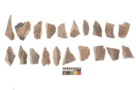 | Description / विवरण | There are n 20 utilized flakes. There are multi directional irregular scar pattern on both dorsal and ventral face of the flakes. Among them few have tapering edges, and few have broken tip. |