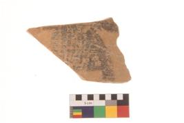 | Description / विवरण | Specimen of black on red ware with traces of decorative geometric Vertical lines painting. |