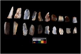 | Description / विवरण | There are n 20 Flake tool; There are multidirectional irregular scar pattern on them. few have blunt edges, Some of them are tapering at one end. |